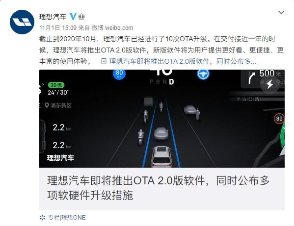 理想OTA 2.0版即将上线